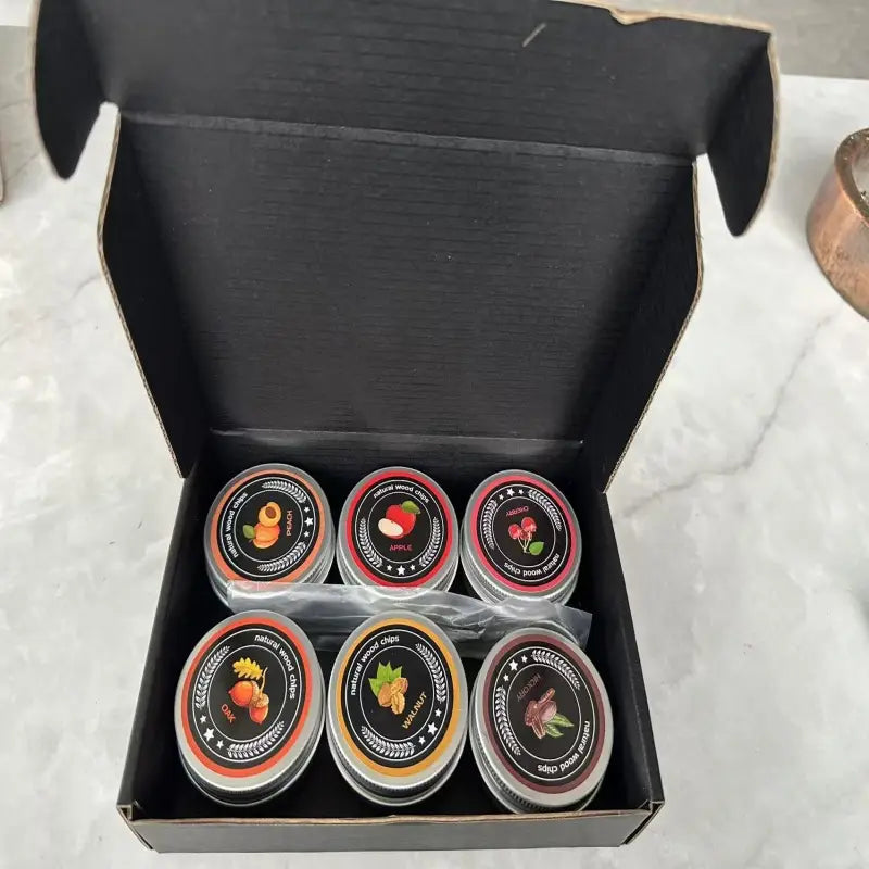 Adaugă profunzime și rafinament fiecărui pahar cu acest set de condimente afumate, ce conține 6 tipuri de așchii de lemn natural. Fie că prepari un cocktail exclusivist sau un simplun whiskey, aromele precum stejar, cireș, hickory și altele transformă fiecare moment într-o experiență gourmet.